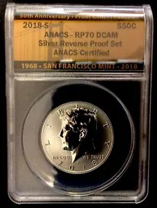 2018 S Kennedy 50c シルバー リバース プルーフ! ANACS RP70DCAM! 50周年記念!エン