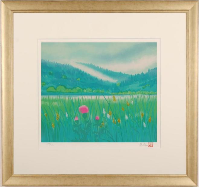 川崎春彦 草萌ゆる 絵画 風景画 和風 インテリア プレゼント コレクション 新築祝い 開店祝い リトグラフ 版画 額付き 国内送料無料