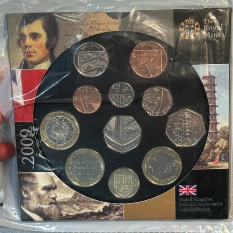 2009年ロイヤルミントブリリアント未流通コインセット(希少なキューガーデン50ペンスコイン付き)
