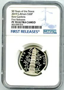 2019年 イギリス 50ペンス NGC PF70 シルバー キューガーデン 50ペンス 初版