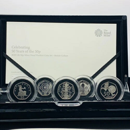 2019 RM シルバープルーフ ピエフォート ブリティッシュカルチャー 5 x 50ペンスコインセット キューガーデン付属