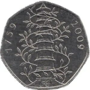 2009 50 ペンス 50 ペンス コイン キュー ガーデンズ - 100% 本物 - 流通 - 低造幣
