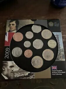 2009年英国プルーフコインセット 5ポンド(「キューガーデン」を含む12枚のコイン)小冊子付き、箱入り