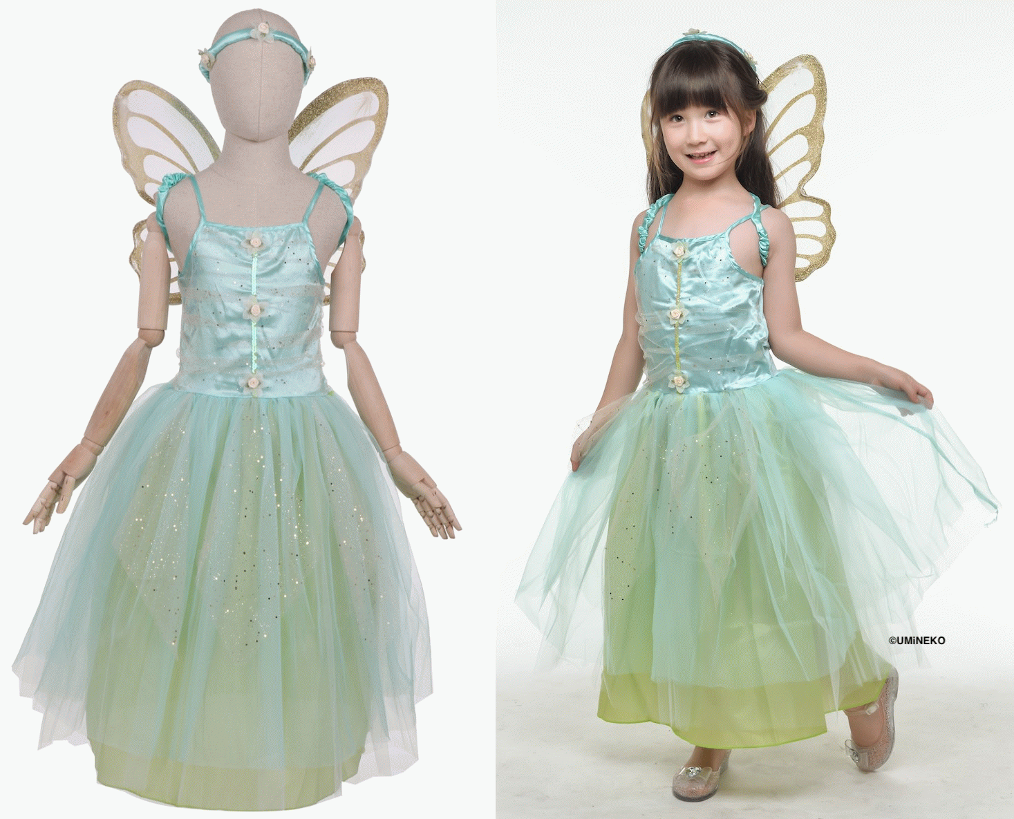 ハロウィン 衣装 子供 コスプレ コスチューム 仮装 女の子 子ども キッズ 小学生 保育園 かわいい お手軽 フェアリー ちょうちょ 蝶 蝶々エルフ 妖精ドレス 3点セット かわいい ふんわりシルエット 120 130cm グリーン お家遊び 家 遊び 室内 遊び着