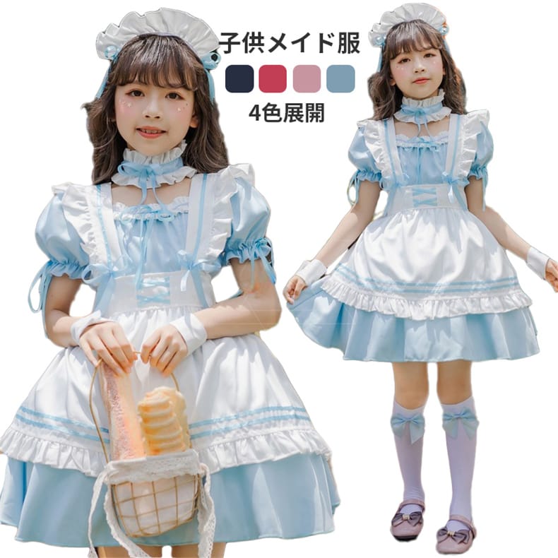 ロリータドレス ハロウィン メイド服 仮装 女の子 7点セット 110cm-150cm ブルー 黒 赤 ピンク ワンピース ドレス 魔女 仮装 プリンセス コスプレ キッズ 女の子 妖精 パーティー 仮装 子供 変装 魔法使い 子どもドレス エルフ cosplay コスチューム キッズドレス