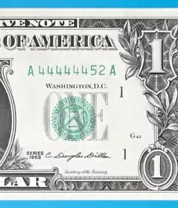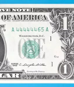 A 44444453 A : リーディング シックス 4 の 1 ドル 1 ドル紙幣 1963 シリーズ (4 - 5 - 3 ) UNC