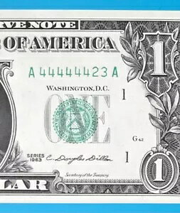 A 44444423 A : リーディング シックス 4 の 1 ドル 1 ドル紙幣 1963 シリーズ (4 - 2 - 3 ) UNC