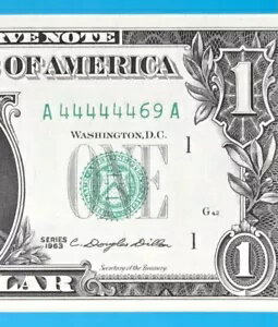 A 44444437 A : リーディング シックス 4 の 1 ドル 1 ドル紙幣 1963 シリーズ (4 - 3 - 7 ) UNC