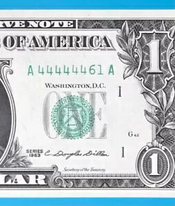 A 44444465 A : リーディング シックス 4 の 1 ドル 1 ドル紙幣 1963 シリーズ (4 - 6 - 5 ) UNC