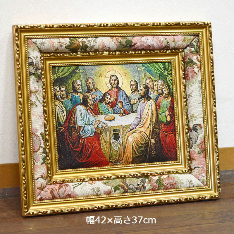 メーカー希望小売価格はメーカーカタログに基づいて掲載しています ゴブラン額絵シリーズ アウトレット特価品 ゴブラン額絵「最後の晩餐」 【送料無料】 軽くて、存在感抜群の額絵です。 クリスマスシーズンはもちろんオールシーズンインテリアとしてもおすすめです。 プレゼントの際はラッピング対応出来ます。お申し付けください。 ■手作り商品の為、作りが雑なところがあります。ご了承の上、お買い求め下さい。 検品後、発送しております。 背面フック×1箇所です。壁側のビス/釘等は付属していません。 商品名 ゴブラン絵画「最後の晩餐」 サイズ(cm) 外寸:W42×H37 色 画像にてご確認下さい。 納 期 即日〜3営業日以内の発送 配送 宅配便 送料:無料(北海道・沖縄・諸離島+1,000円) 生産国 中 国 備 考 --- 補足内容 ・なるべく現状に近い状態で撮影していますが、撮影時の光の加減やお客様のPC設定により若干の色合いが異なる場合がございます。予めご了承下さい。★☆ 額絵シリーズ:最後の晩餐額 ☆★ ■ゴブラン額絵「最後の晩餐」アウトレット特価品での販売になります。【送料無料】 ■ゴブラン織りの生地の額と絵が高級感があります。 ■額のつなぎ目が気になるところがあります。特価品ですので、ご了承の上、お買い求め下さい。 ■最後の晩餐額☆ ■ゴブラン織りの絵をお楽しみ頂けます。 ■少量入荷の特大サイズもご覧下さい。