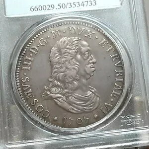 イタリア トスカーナ - リボルノ 1707 トール シルバー コイン Dav-1500、KM-35 PCGS AU50 選択!