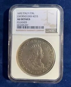 イタリア トスカーナ/リヴォルノ COSIMO III 1692 TALLERO シルバー コイン NGC 認定 AU DET。