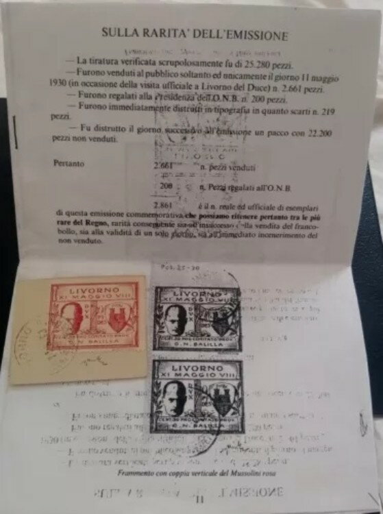 1930年 イタリア王国 リヴォルノ ムッソリーニ訪問 30セント リラック ピンク 認定