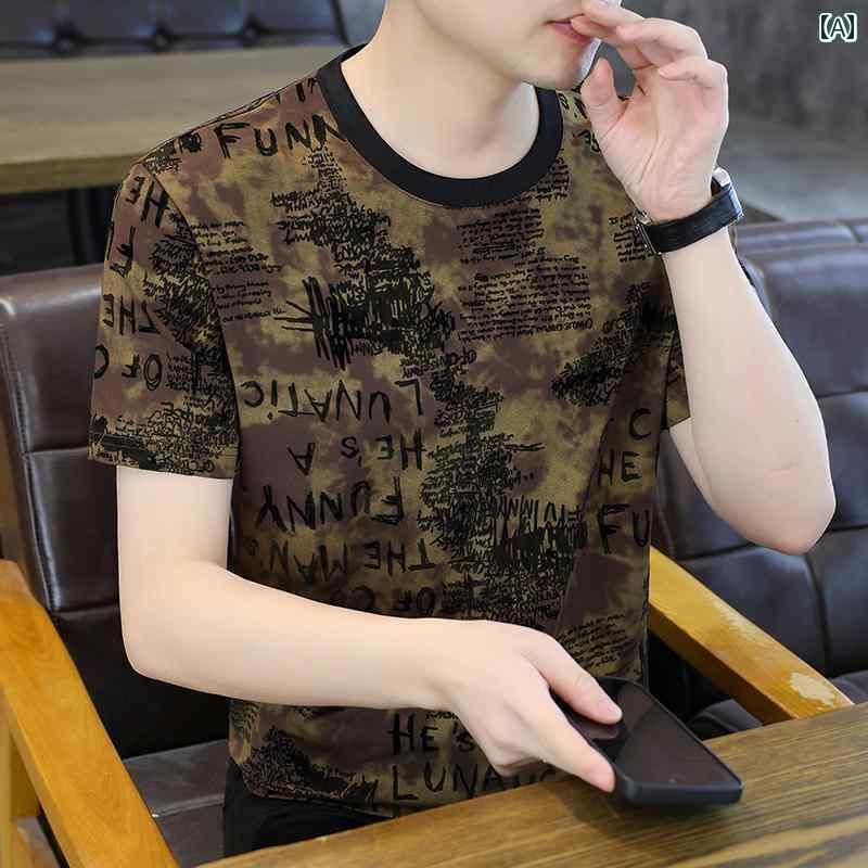 迷彩 カモ柄 パンツ 迷彩 半袖 Tシャツ メンズ レター スリム ラウンドネック 夏 スタイル トップス 服 ファッション