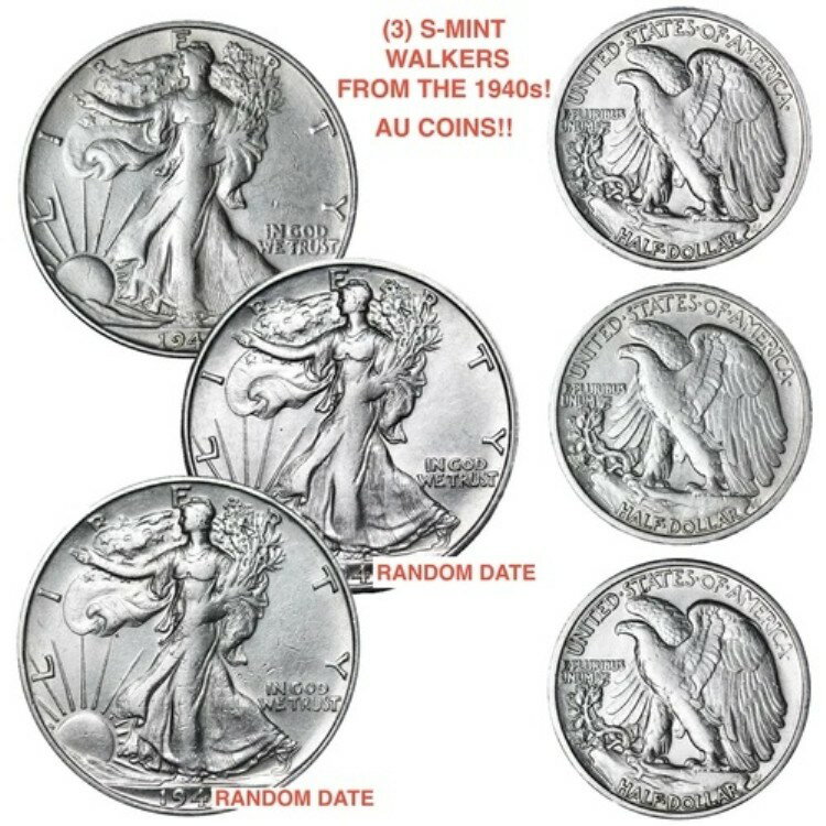 (3枚セット) 1940年代のウォーキング・リバティ・ハーフダラー オーストラリアS-ミント ランダムピック