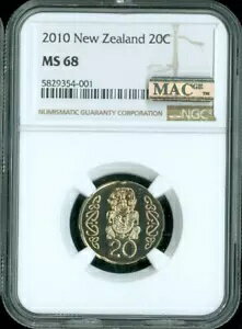 2010 ニュージーランド 20 セント NGC MS68 MAC 品質