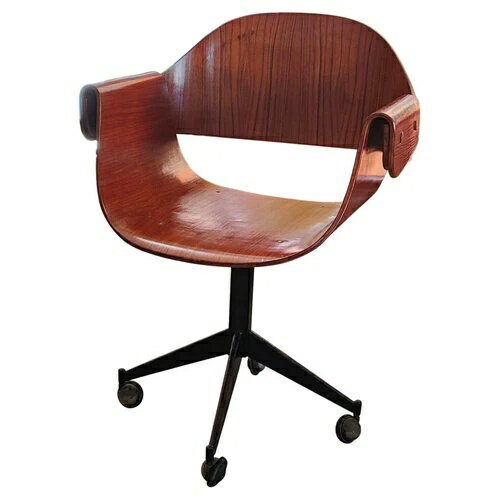 カルロ・ラッティによる、1950年代イタリア製の珍しい曲げ合板製回転アームチェア。