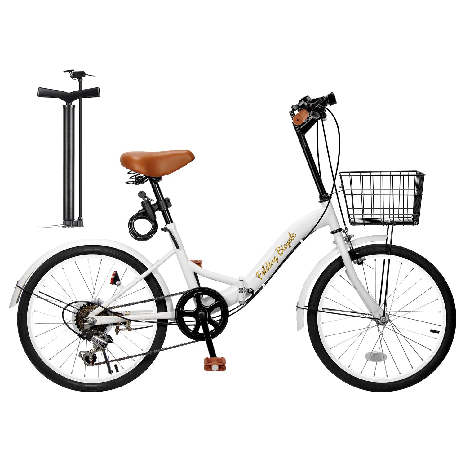 Mixiu 折畳み自転車 20インチ 軽量 素早く折畳可能 シマノ6段変速 高炭素鋼フレーム ハンドル・サドル高さ調整可能 折り畳み自転車 通勤 通学 折りたたみ自転車 前後泥除け装備 ワイヤーロック、ライト、カゴ、空気入れ付き 男女兼用 (ホワイト)