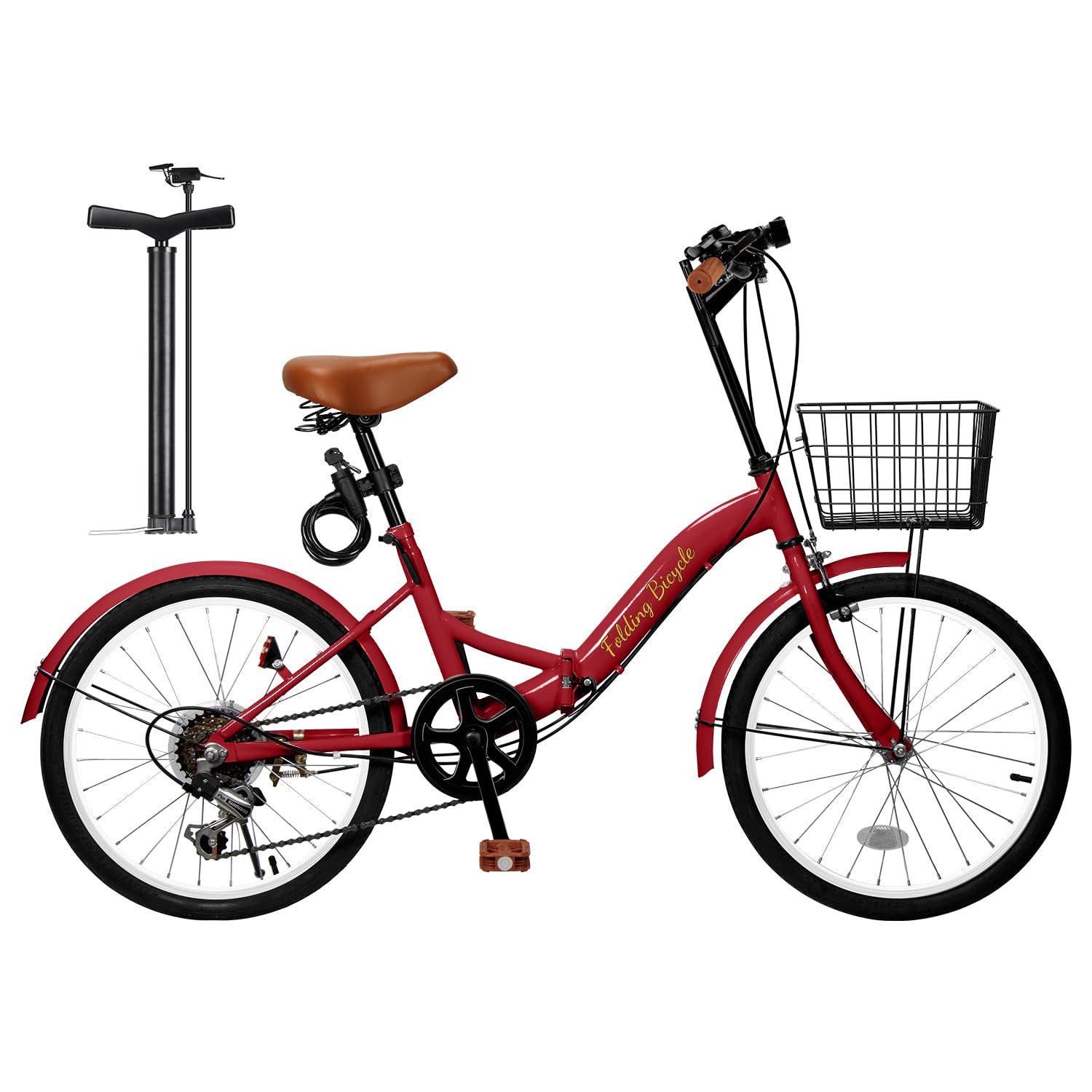 ・【シマノ6段変速ギア】: 折畳み自転車は安全で信頼できるシマノ社製の変速機を搭載し、ハンドルのサムシフターでスムーズに変速が行えます。さまざまな路面状況に応じて精確に変速し、ペダリング中に負担を軽減させ、強力な制動力を提供します。・【高強度の高炭素鋼】:折りたたみ自転車のフレームの素材は研究開発チームが高炭素鋼のフレームを採用しています。高炭素鋼は振動吸収性が高いので、地面からの衝撃を軽減し、走行中にしっかりとサポートし、長時間のライディングにも楽々。・【ポータブル折りたたみデザイン】:当社の20インチ折り畳み自転車は折り畳み式で素早くコンパクトに折りたたむことができます。軽自動車に入れることが可能なので、アウトドアや旅行の際にもサイクリングを楽しむことができ、多様なシーンに適しています。・【前・後輪ブレーキシステム】:弊社は安全を非常に重視し、安全で十分な制動力を発揮する前輪Vブレーキと後輪バンドブレーキを使用しています。安定している制動力と簡単な操作で安全な走行を確保します。・【充実の付属品&万全のアフターサービス】:ライディングの楽しさを存分に味わっていただくために、付属したカゴやライト、ワイヤーロック以外に、工具バッグと空気入れもプレゼント!日常使用に必要なものを取り揃え、あらゆるライディングニーズに応えられます。製品には1年間の保証が付いております。ご連絡いただけると誠心誠意対応致します。 ご注意:自転車は大型商品のため、の返品受付センターで返品手続きを受け付けられないことがあります。この場合は、お手数をおかけしますが、取扱説明書に記載されている連絡先までご連絡くださいませ。