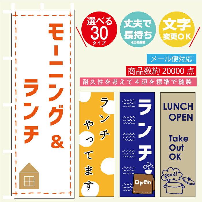 のぼり旗 ランチ・カフェ・昼ごはん・モーニング 寸法60×180 丈夫で長持ち【四辺標準縫製】のぼり旗 送料無料【3枚以上で】のぼり旗 オリジナル/文字変更可/のぼり旗 ランチ・カフェ・昼ごはん・モーニング条件付き送料無料