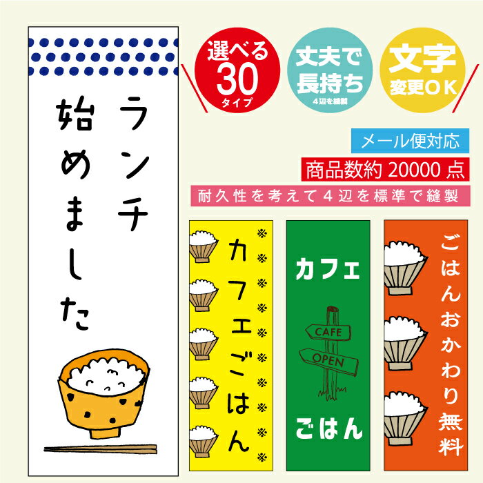 のぼり旗 ランチ・カフェ・昼ごはん・モーニング 寸法60×180 丈夫で長持ち【四辺標準縫製】のぼり旗 送料無料【3枚以上で】のぼり旗 オリジナル/文字変更可/のぼり旗 ランチ・カフェ・昼ごはん・モーニング条件付き送料無料