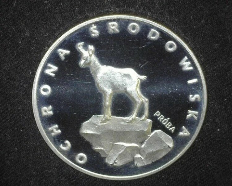 希少な 1979 年ポーランド シルバー プルーフ - Proba 100 ZL マウンテン ゴート - パターン。