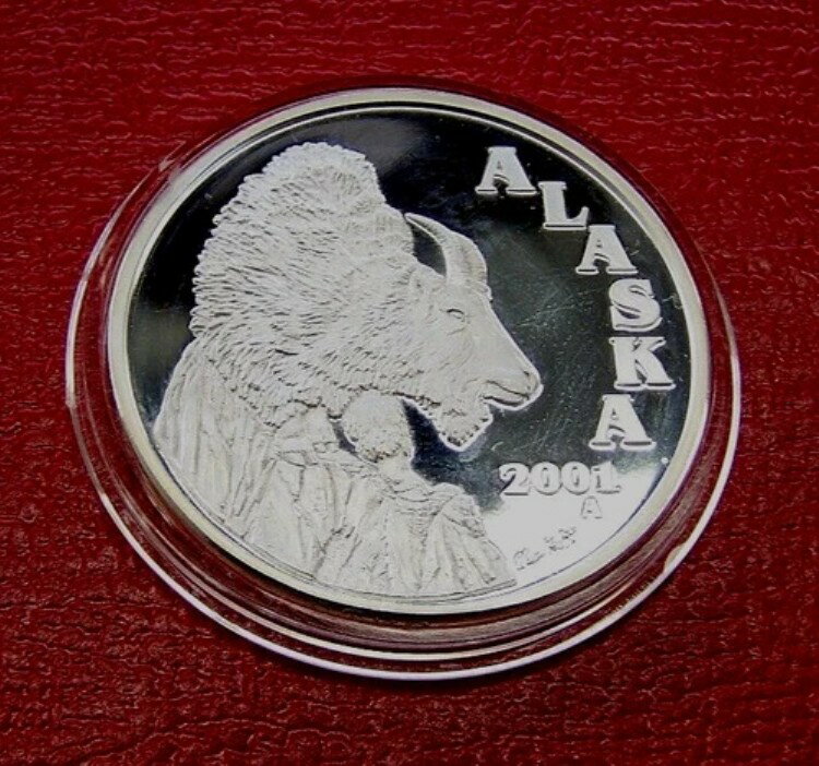 2001年アラスカ造幣局マウンテンゴートメダリオン1オンス999プルーフシルバー