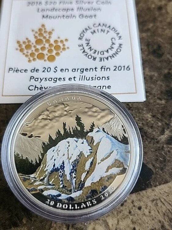 2016年 20ドル 純銀貨 風景画 イリュージョン ロイヤルカナダミント - マウンテンゴート