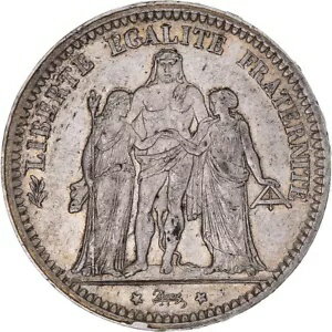 [#900100] コイン、フランス、エルキュール、5フラン、1871年、パリ、カメリナ、EF、シル、ver