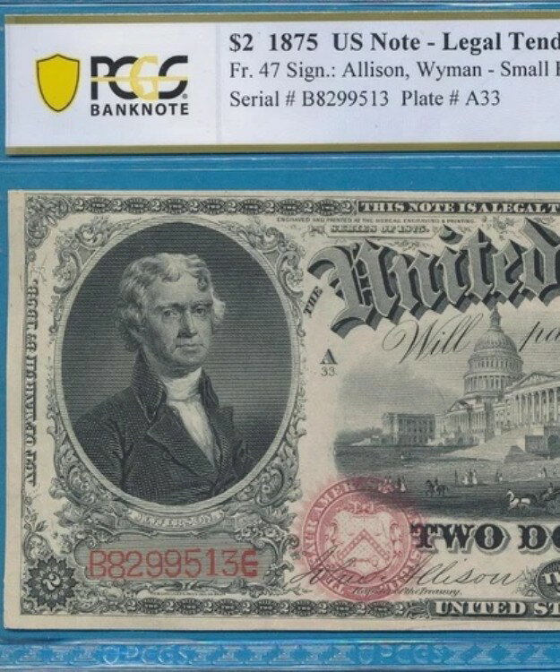 2.00ドル 1875年 FR.47 装飾花柄 赤シール 法定通貨 PCGS XF40