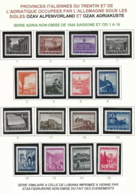 ドイツ占領時代のアルペンフォールラント切手 1945年 希少な16枚セット MNH VF