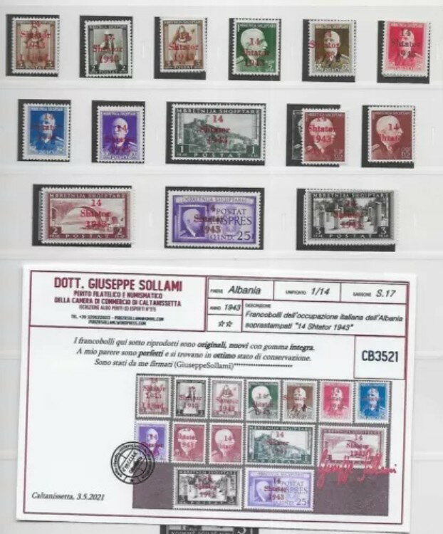 ドイツ占領下のアルバニア切手 1943年 MI 1-14 写真証明 MNH / CAT 価値 550ドル