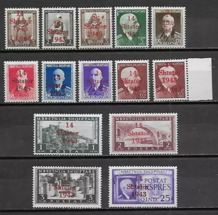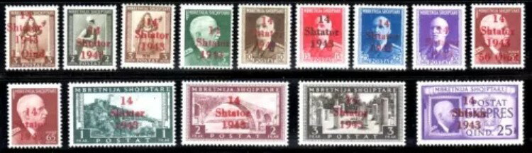 ドイツ占領下のアルバニア切手 1943年 MI 1-14 MNH VF