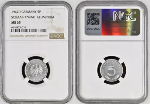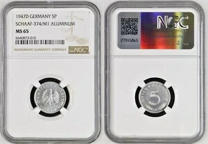 5 ペニヒ 1947 D トライアルストライク 連合軍占領 アルミニウム製! NGC MS 65 106567