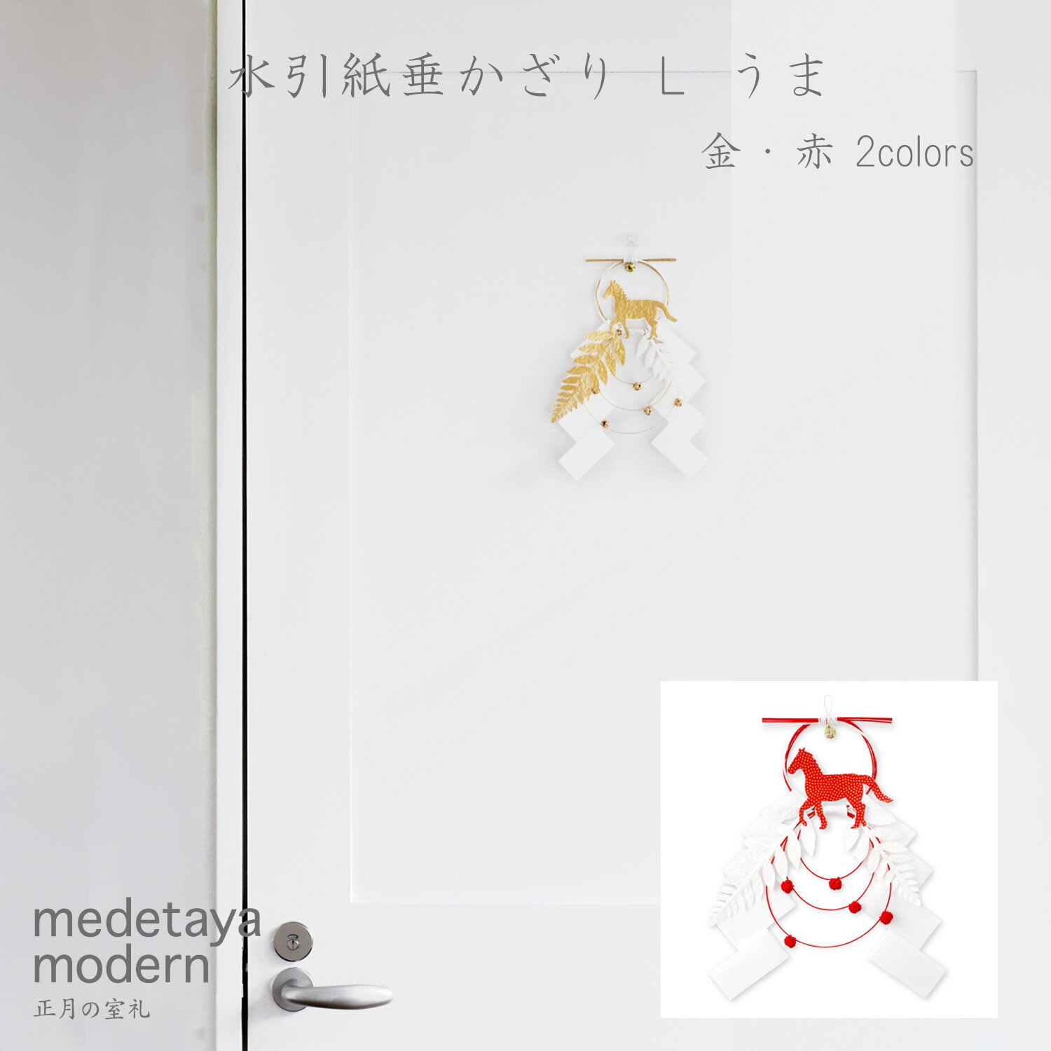 和紙 お正月飾り 迎春 新年 お正月 午年 馬 うま 干支 十二支 国産 日本製 玄関飾り オーナメント ドア ミニ | medetaya modern 水引紙垂かざり L うま【金・赤】2color