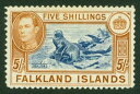 フォークランド諸島 1938 GVI 5/- インディゴ&ペールイエローブラウン LM キャット ?1100 - 希少