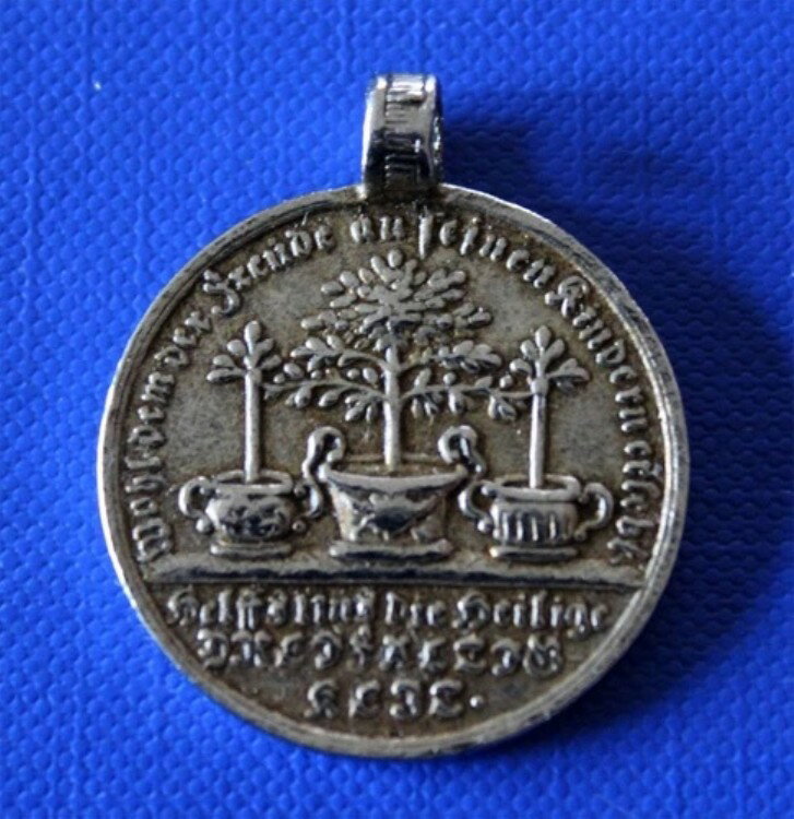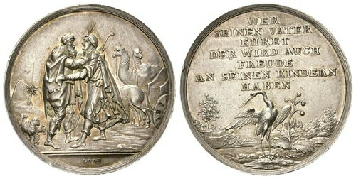 クリスチャン・ヴェルムート作「親への子の愛」銀メダル、1700年頃、希少