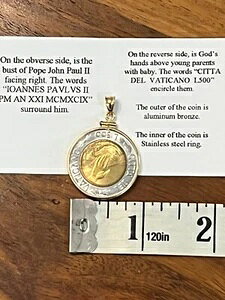 教皇ヨハネ・パウロ2世 / 神の手が若い両親の上に 1999年 コイン 500L 14k ペンダント