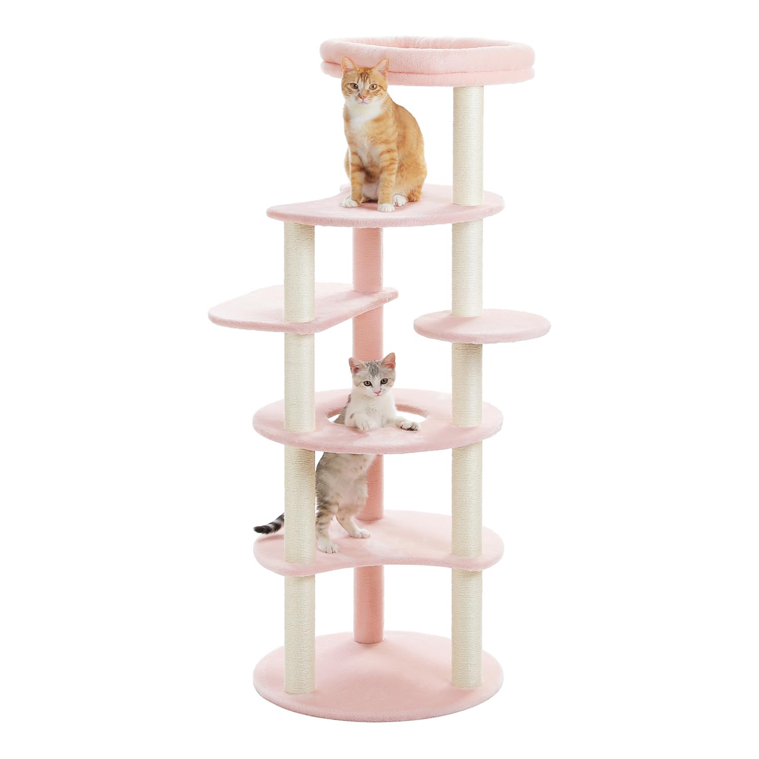 |  PETEPELA(ぺテぺラ) キャットタワー スリム 大型猫 猫タワー 多頭飼い 据置 爪とぎ 麻紐 おもちゃ おしゃれ 桜の花 かわいい おしゃれ コンパクト 省スペース 人気 安定 運動不足解消 倒れ防止策 - ピンク 高さ154cm