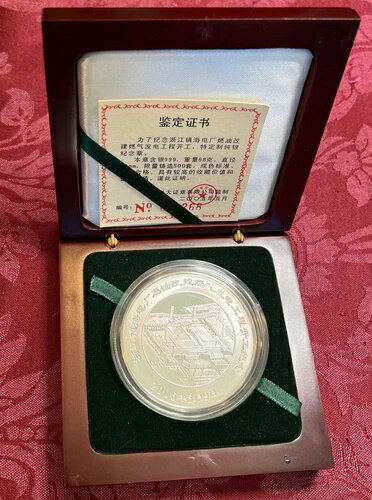 2005年 鎮江、江蘇省 中国 発電所 記念 .999 68 gr 銀貨 COA付き