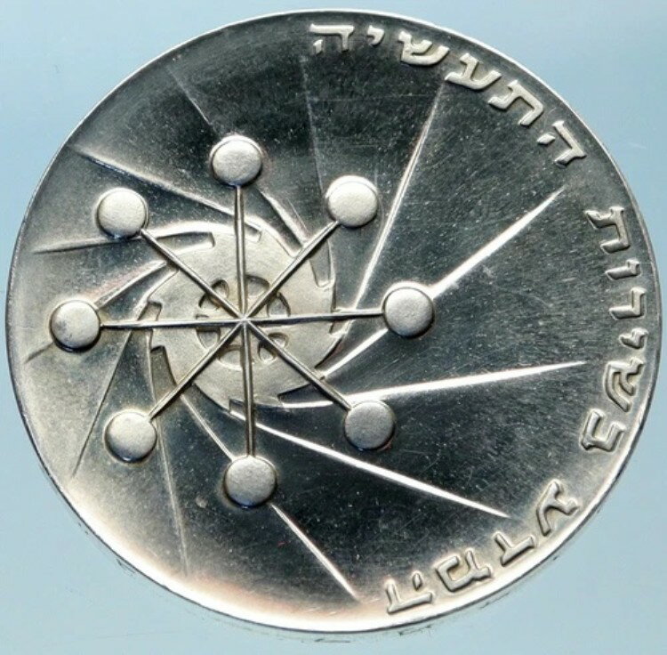 1971 イスラエル発電所分子歯車古い証拠シルバー 10 リロート コイン i88407