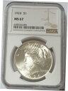 PRISTINE 1924 ピースシルバー $1 ドルコイン NGC 新品ステート 67- show original titlePRISTINE 1924 Peace Silver $1 Dollar Coin NGC New State 67- show original title