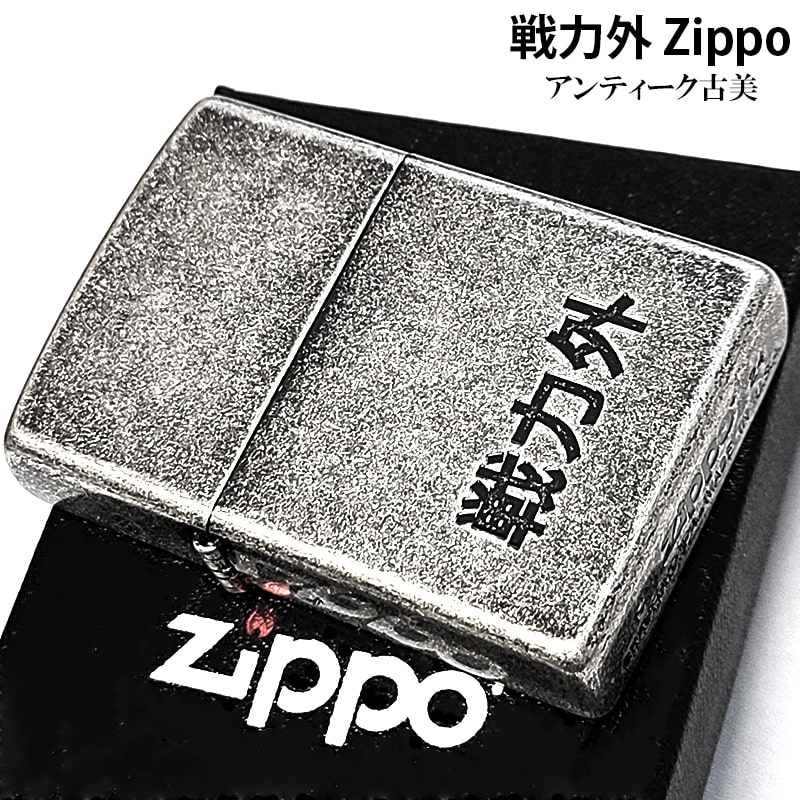 ZIPPO ライター 面白い 戦力外 アンティークシルバー 彫刻 ジッポ 漢字 ニッケルバレル 古美仕上げ ユニーク 日本語 シンプル 渋い メンズ ギフト プレゼント