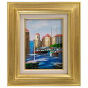 油彩画 酒井健吉 「ラ・ロシェル港」 SM号タテ 額入り 油絵 風景画 額装絵画 手描き 肉筆 フランスの港町 船舶 La Rochelle おしゃれ UVカット透明アクリル板