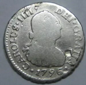 1796 サンティアゴ 1/2 本物のチリ チャールズ 4 世 スペイン銀植民地時代の検定者