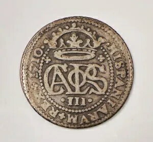 1710 スペイン銀 2 レアル - アンティーク 1700 年代の海賊の宝コイン
