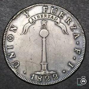 チリ、1 ペソ 1822 FI、サンティアゴ ミント、銀冠コイン、火山