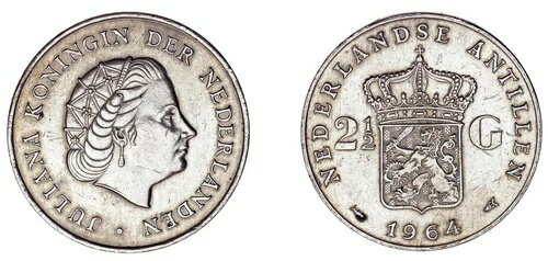 2.5 銀グルデン - 2.5 フローリン銀。オランダ領アンティル諸島、1964年。XF / XF。