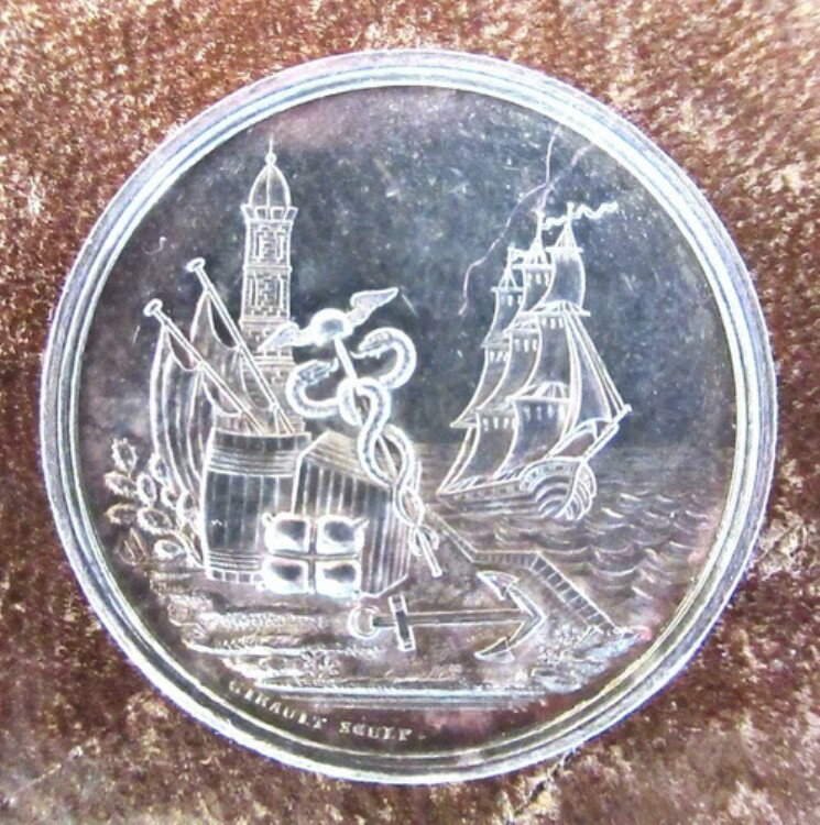 フランス-1852年-アンティル諸島-灯台付近を航行する3本マストの船-銀-非常に希少