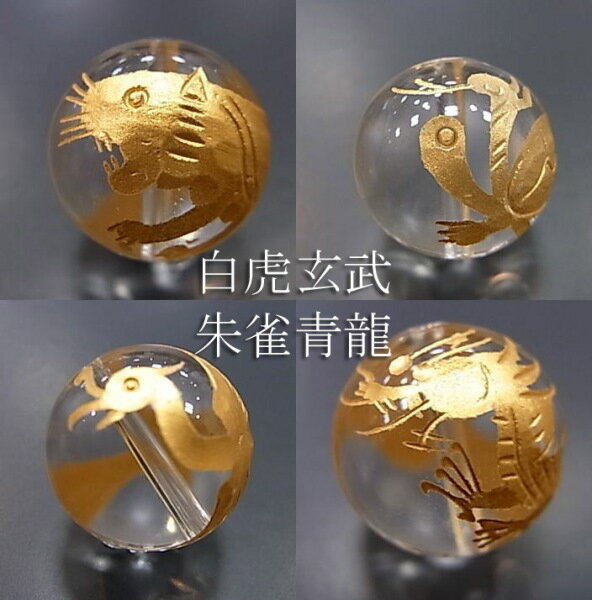 金塗り四神水晶16mm【風水・青龍・白虎・朱雀・玄武・天然石・パワーストーン】